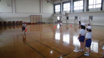6月21日(月)2年生が体育館での体育の授業のようすです。