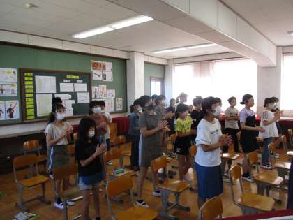 今日も手拍子と足ぶみでいろいろなリズムを学習しました。