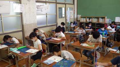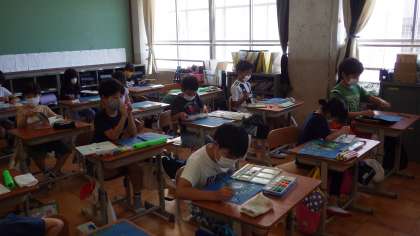 前回に続き自分達が花火師になったつもりで打ち上げ花火を描きました。