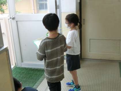 来週に予定している1年生との学校探検にむけての準備を行いました。校内の教室を見て回り,来週スムーズに案内できるよう確認をしました。