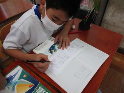 自分の考えをノートに書いたり,友だちに伝えたりしています。