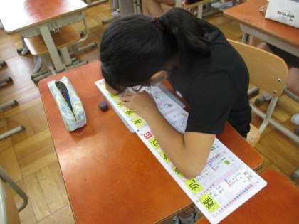とめ,はらいなどに気をつけて丁寧に書いています。