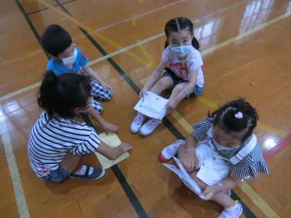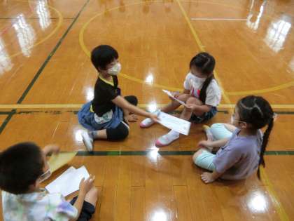 来週行う,学校探検に向けて班ごとに顔合わせを行いました。名前の確認をした後,好きな食べ物を聞いたりして少しだけ,仲良くなりました。来週に向けて,少しでも仲が深まってくれるといいなと思います。