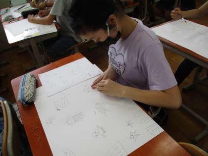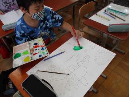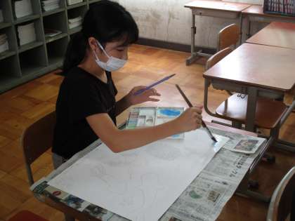 丁寧に下書きをしたり,色をぬったりしている様子です。