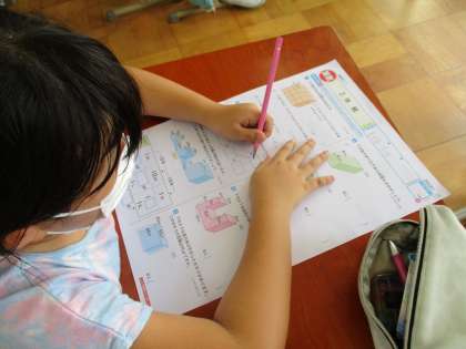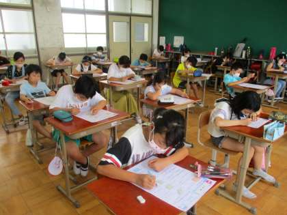 体積の確認テストをしました。体積の公式や公式を使った計算など,落ち着いて取り組むことができました。