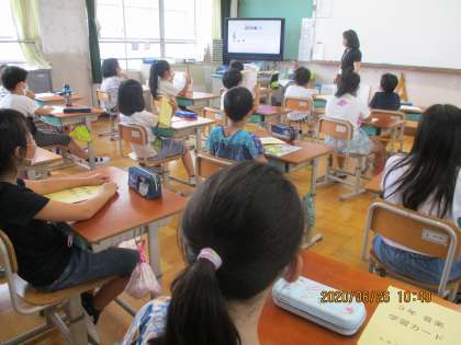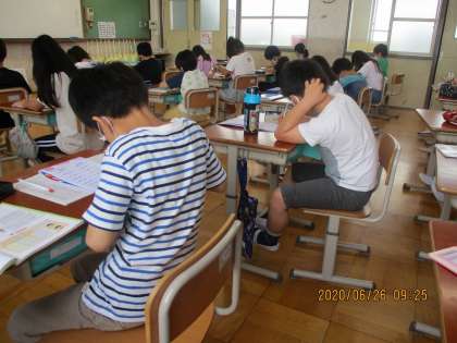朝からとても暑い日でしたが,子ども達は集中して学習していました。算数は,わり算が早くできるようになりました。音楽は,音符のかき方を丁寧に学習していました。