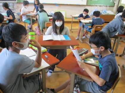 グループごとにインタビュー内容を報告しました。また,報告後に全体で気づいたことを伝え合いました。
