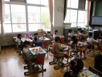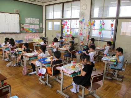 今日の給食はパン給食でした。初めてのバターうずまきパンは,バターの味が濃く,ふわふわでおいしかったようです。
