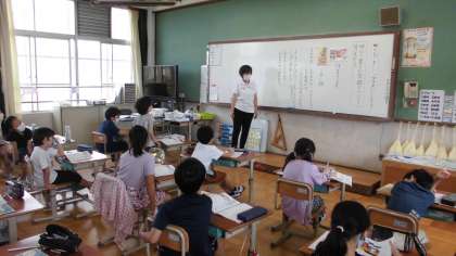 3年生の道徳の授業です。道徳ではお互いの考えや思いを交流することが大切です。そこで今日は,道徳の授業の最後に各々の感想をノートに書き,書かれたのノートを静かに,見合うことにしました。交流の仕方もひと工夫です。