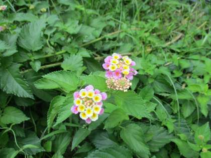 校長室の前に「ランタナ」が生けられています。校内を散歩すると・・・中庭に咲いていました。熱帯地方の植物だそうで,暑い毎日でも元気いっぱいです。
