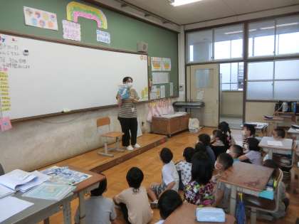 朝読書の時間に,読み聞かせに来てくださりました。水族館のジュゴンの話に,真剣に耳を傾けました。
