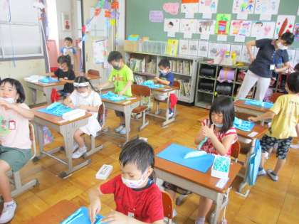 かたつむり,おしろ,ぐるぐるお風呂,かえる,あめ,めいろ,かとりせんこうなど,楽しいものができました。