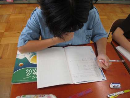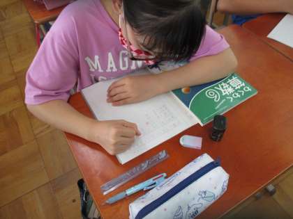 かける数が分数のときの,かける数と積の大きさの関係について学習しました。