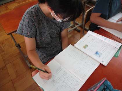 練習問題に取り組んだリ,自分の考えを伝えたりしている様子です。
