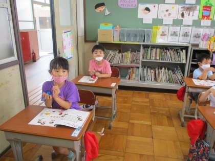 カスタネットを使ってリズムうちをしました。「じゃんけんぽん」の歌に合わせて上手に演奏できました。