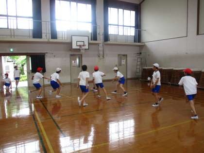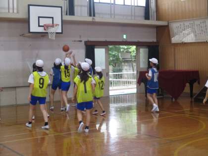 バスケットボールの学習に取り組んでいます。
