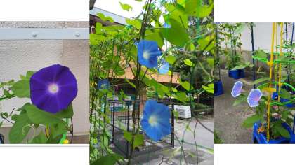 またアサガオの花も佳境に入りつつあります。三様の花が梅雨明けを待っています。