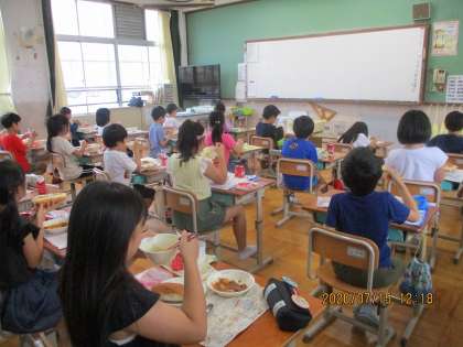 今日も給食の時間に,子ども達は黙々と給食を食べています。お話をして楽しく食べたいだろうと思いますが,黙って食べています。とても,えらい!!