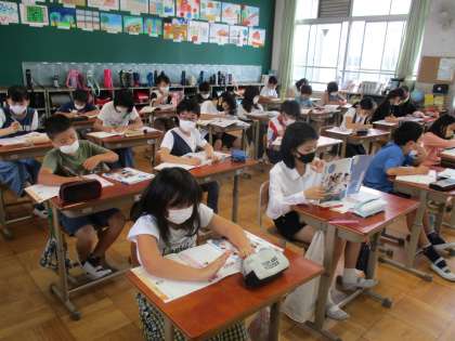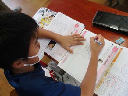 今日は,手塚治虫さんの話を通して「自分のよさや長所」について考えました。自分ではなかなか見つからない・・・という子は,友だちに聞いていました。最後は「長所を大事にしながら,努力し続けることが大切」「自分のよさを知れてよかった」など振り返ることができました。