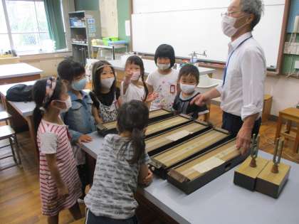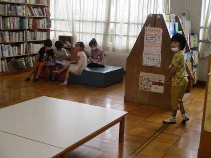学校探検にグループで行きました。今回は,前回の2年生に連れて行ってもらった探検で,もっと詳しく見たいと思った教室に行きました。写真は,保健室,理科室,図書室です。