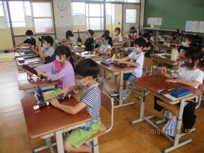 リコーダーの学習が始まりました。待ちに待ったリコーダー。慎重に袋を開けて,使い方を真剣に聞いていました。練習を重ねて,きれいな音色でふけるようになるといいです。