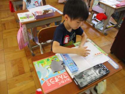 算数のテストをしました。じっくりと問題に取り組んでいます。