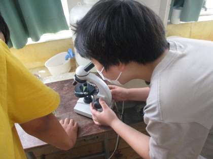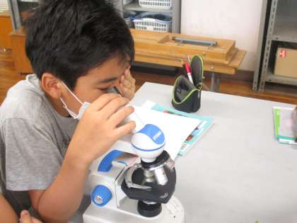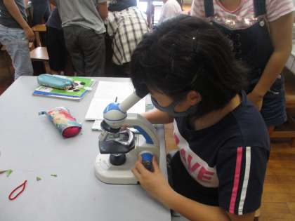 顕微鏡を使って学習をしている様子です。