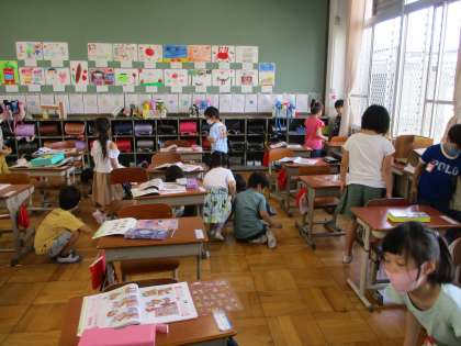 「片付けをすると気持ちがいい!」と気づいたので,まずはお道具箱の整頓をしました。その後,「いっしょに片付けをすると気持ちがいい!」と言っていたので,みんなで使う教室をきれいにしようとゴミ拾いをしました。終わった後は,「きれいになった!」とにこにこでした。