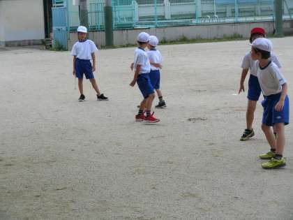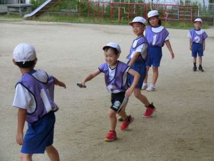 2年生の体育では,バトンパスを何度も練習しながらリレーを行っています。どんどん上手にできるようになってきました。