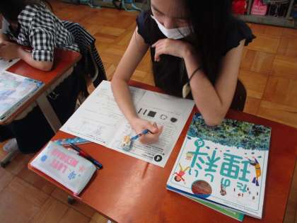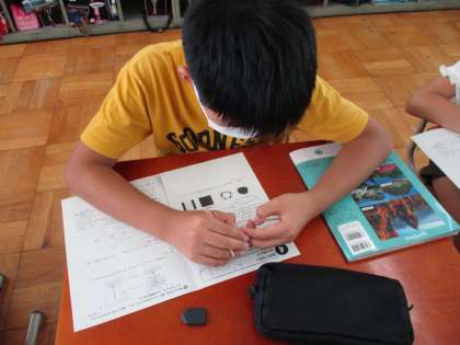 プリントで単元の復習をしている様子です。