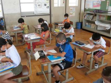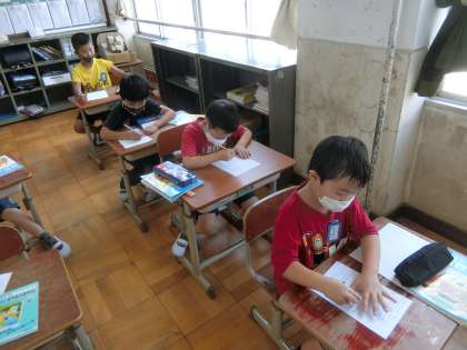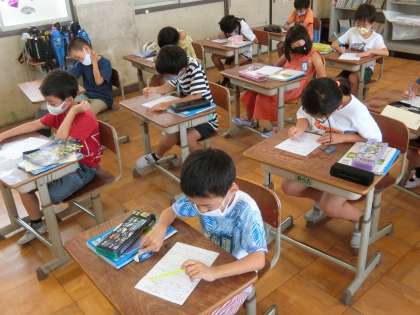 2年生の算数では,「図にかいて考えよう」という学習を進めています。問題文を読み,図に表すところが難しいようです。繰り返し練習していきます。