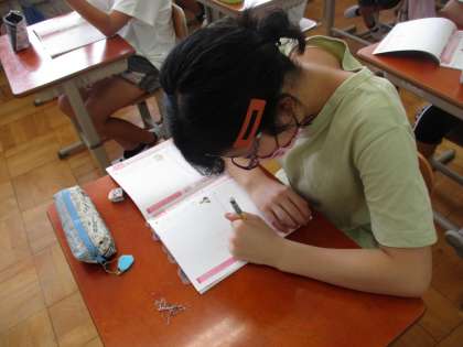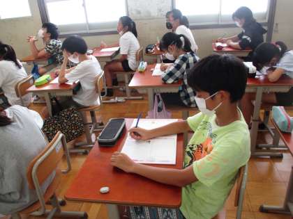 自分の考えをノートにかいている様子です。