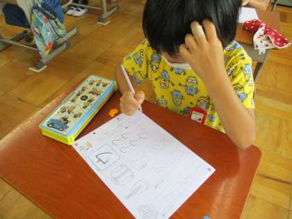 今日は「ウ」を学習しました。とめはらいに気を付けています。