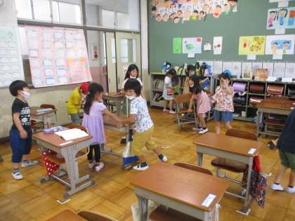 掃除の手際がいいです。教室掃除のほうきさんがとても上手にはき,机運びの係が協力して運び,あっという間に掃除が終わりました。