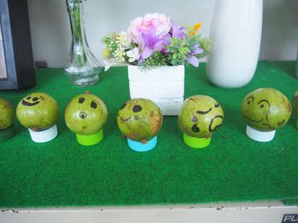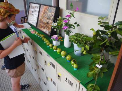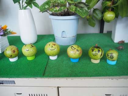9月2日(水)朱六の森にある椿に実がなっています。職員室の前に椿の実を並べたところ,子どもたちが,自由に顔を書いてくれました。いろんな顔があります。この世の中と同じで,みんな違って,みんなよいのです。