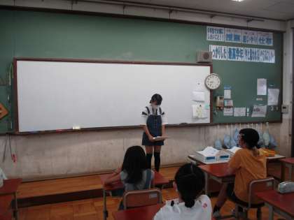総合的な学習の時間に調べた内容を発表している様子です。