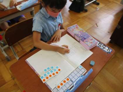 今日も「ちがいはいくつ」をブロックや図を使って考えました。