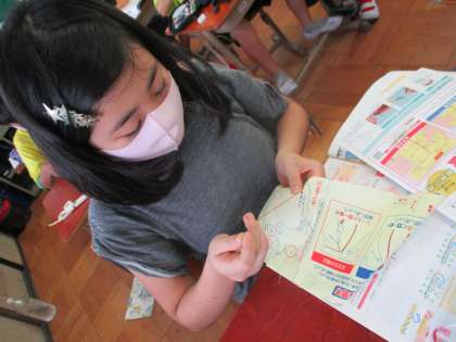 今日も,玉結び,玉どめを練習しました。動画を見たり,上手な友達に教えてもらったりしながら繰り返し練習し,ほとんどの子ができるようになりました。次回は,なみぬいの仕方に挑戦です。