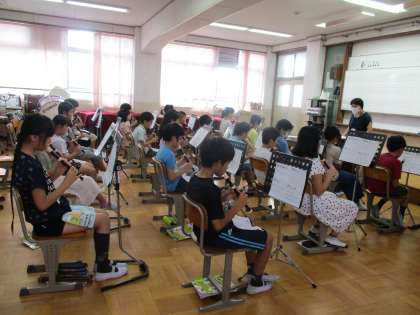 リコーダーの指使いに慣れるため,いくつかの有名なCMのフレーズを演奏しました。スピードを速くして吹けるかにも挑戦しました。初見にも関わらず,楽しみながら上手に吹くことができました。