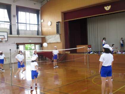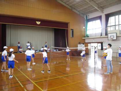 「ソフトバレーボール」の単元の学習に取り組んでいる様子です。