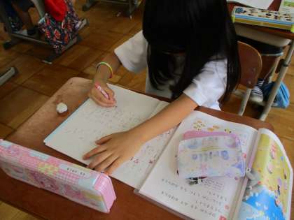 今日も,「おはなしづくり」をしました。7−3=4のお話を作りました。