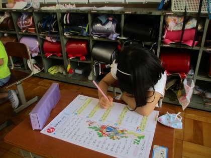 おおきなかぶのテストをしました。初めて自分で問題を読んで取り組んでみました。