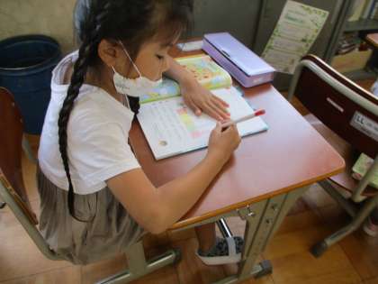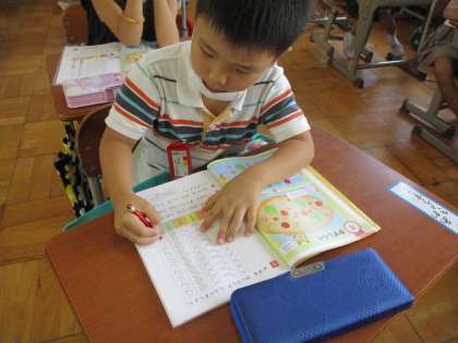 並べたくだものに「下からひとつずつ横線を引く。」「メロンを切って他のくだものと同じ大きさにする。」「線でつなぐ。」などたくさんの方法を考えついたすごい1年生でした。
