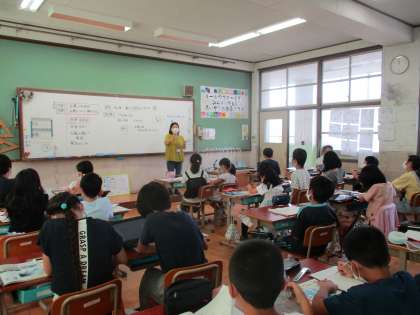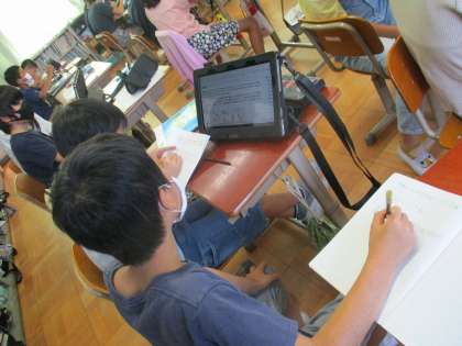 今日は,台風について調べ学習をしました。タブレットを使って調べたことをノートにまとめ,全体でも交流しました。