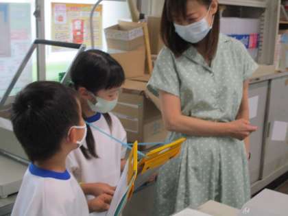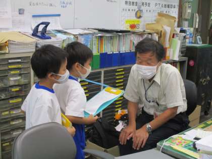 生活科の学習です。いろいろな先生と仲良しになるためにお話をしにいきました。