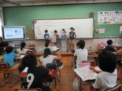 単元のまとめ「オリジナル時間割の発表会」をしました。どの班も習ったことを生かし,各曜日の時間割を発表できました。スペシャル科目もいろいろあって面白かったです。みんなの前での発表も慣れてきたようです。