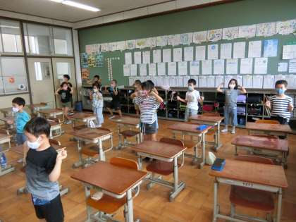 体育科参観日に向けて,パプリカのダンスを頑張っています。細かい部分もお互いに教えあって,どんどん上手になってきました。楽しそうに踊る2年生を見ていると,こちらも笑顔になります。体育科参観日で披露するのが楽しみです。