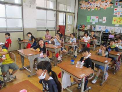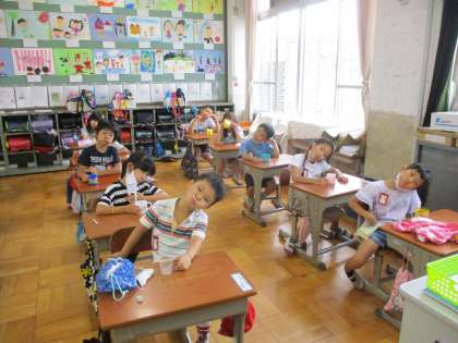 2回目のフッ化物洗口です。前回よりは,味にも慣れたようです。上手にできました。