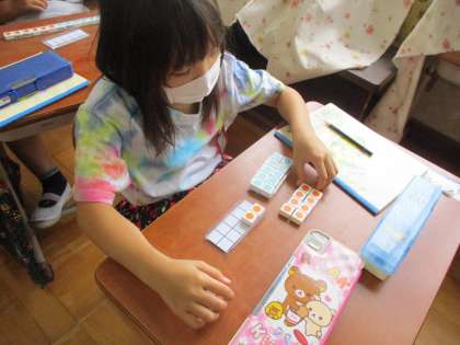 10よりおおきいかずお学習です。今日は,ブロックを並べた後,数をノートに書いてみました。