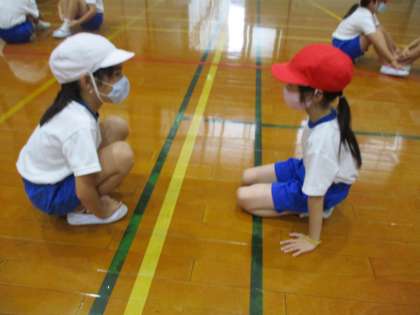 今日は,4年生となかよしになろう作戦を実行しました。はじめに挨拶をして,ペアになって自己紹介や質問をしました。そのあと,ふえおにをしました。4年生はさすがに走るのが速く,タッチをよけるのも上手です。でも,すばしっこい1年生もがんばりました!最後にお礼の挨拶をして終わりました。4年生にも「また,遊びましょう。」と言ってもらってうれしい時間になりました。